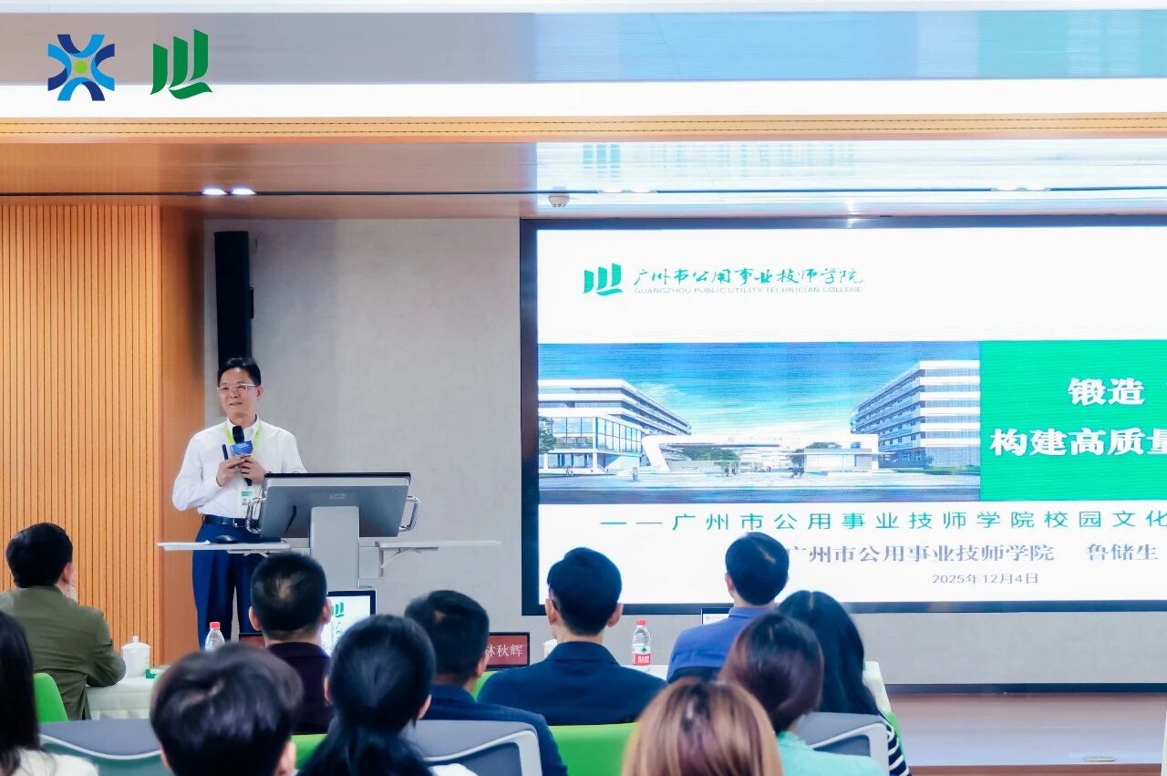 在讲座交流环节,来自多所院校的负责人与骨干教师围绕技工院校特色育人实践展开深度对话。广州市公用事业技师学院院长鲁储生以《锻造“钧正”品牌,构建高质量文化育人新格局》为题,分享学院从精神、制度、物质、行为四个维度锻造“钧正”校园文化体系的实践成果,形成了具有鲜明特色的技工院校文化育人“公用方案”。近年来,学院以“一张蓝图绘到底”的战略定力,依托“一引领·五核心·三基础·四平台”建设方案,八大维度有机融合,共同构筑“钧正”文化的内涵体系,坚持以“钧”载道、以“正”育人,致力于培养政治合格、专业过硬、作风优良的高素质技能人才,为打造粤港澳大湾区高技能人才培养高地、推动学院高质量高水平强特色建设、创建全国一流技师学院提供了独特的“公用方案”。
