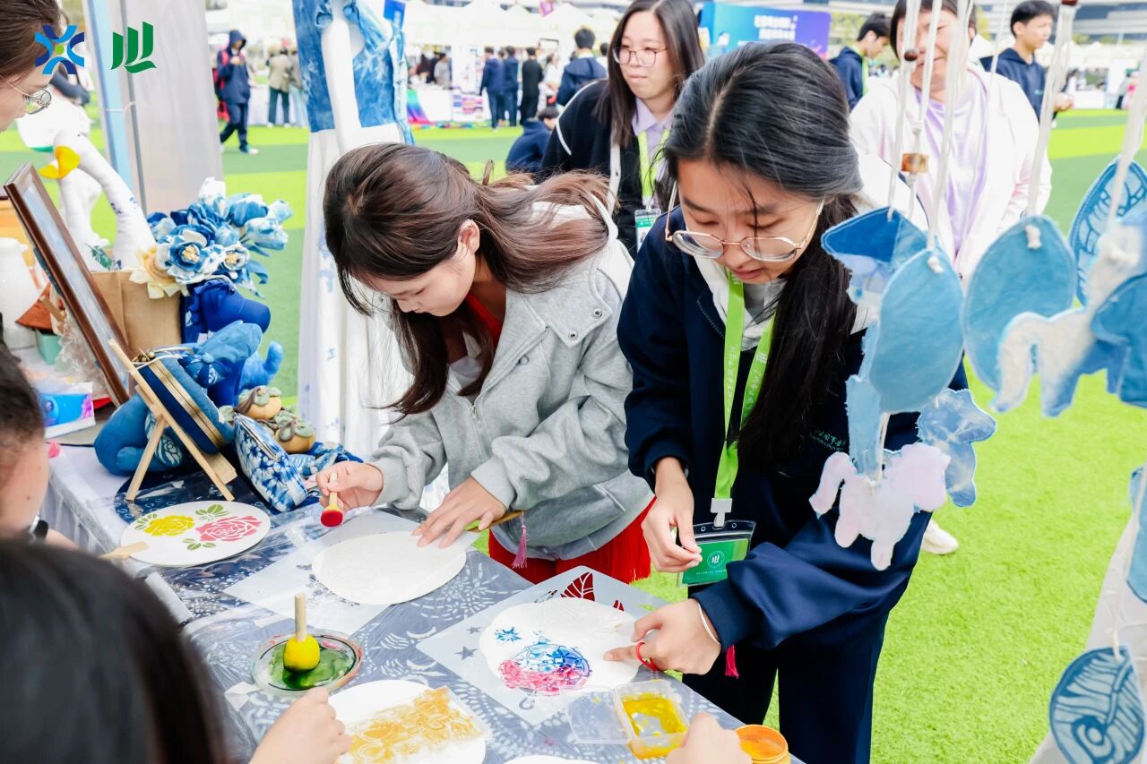活动特设趣游集章环节,引导师生在探索与体验中感受社团文化的独特魅力。参与者可尝试“重走长征路”、音乐飞花令、盲盒答题等趣味游戏项目,亲手制作非遗压花台灯、超轻粘土艺术作品、落叶贴画、拓印创作,体验广东非遗南派花毽、投壶、飞镖等传统体育项目,还可通过集章打卡方式收集各类别社团专属印章,兑换限量文创盲盒。活动现场气氛热烈,互动踊跃,成为一场融合技能展示、文化传播与趣味互动的青春盛会。