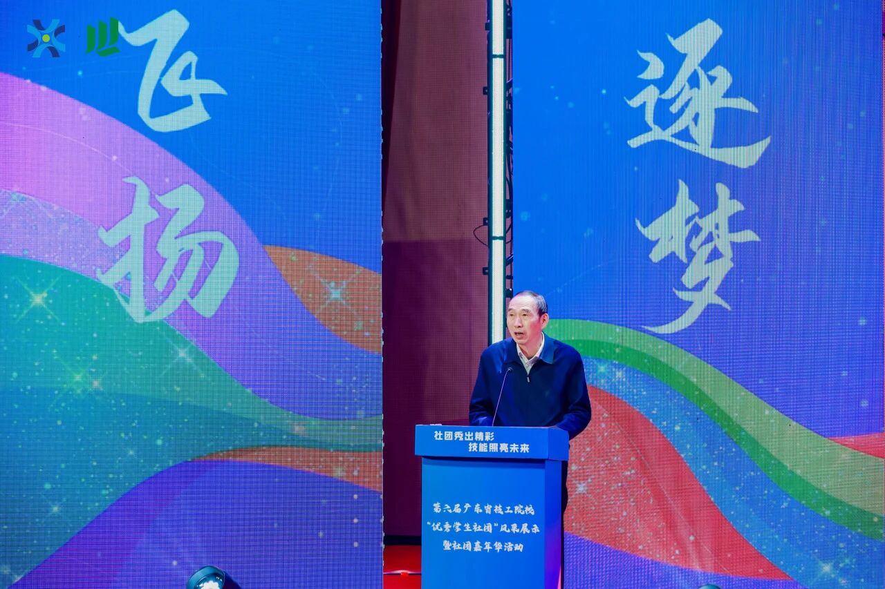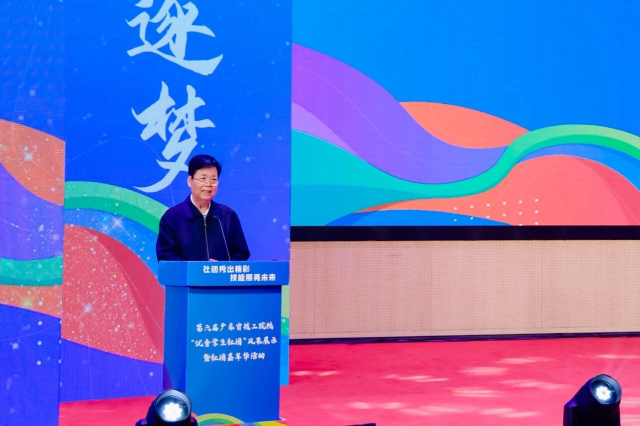 活动压轴环节迎来社团嘉年华暨“秋之蕴”育人成果展演。广州市公用事业技师学院鲁储生院长致欢迎辞,他表示,学生社团是落实《广东省技工院校关爱学生工作指导意见》的重要途径,也是行为文化建设中最鲜活、最动人的篇章。本次活动不仅是对学院办学实力与校园文化建设的高度认可,更是对全省技工院校社团育人成果的集中检阅。他期待,各院校以技能为桥,共同书写广东技工教育百花齐放、活力迸发的崭新篇章。