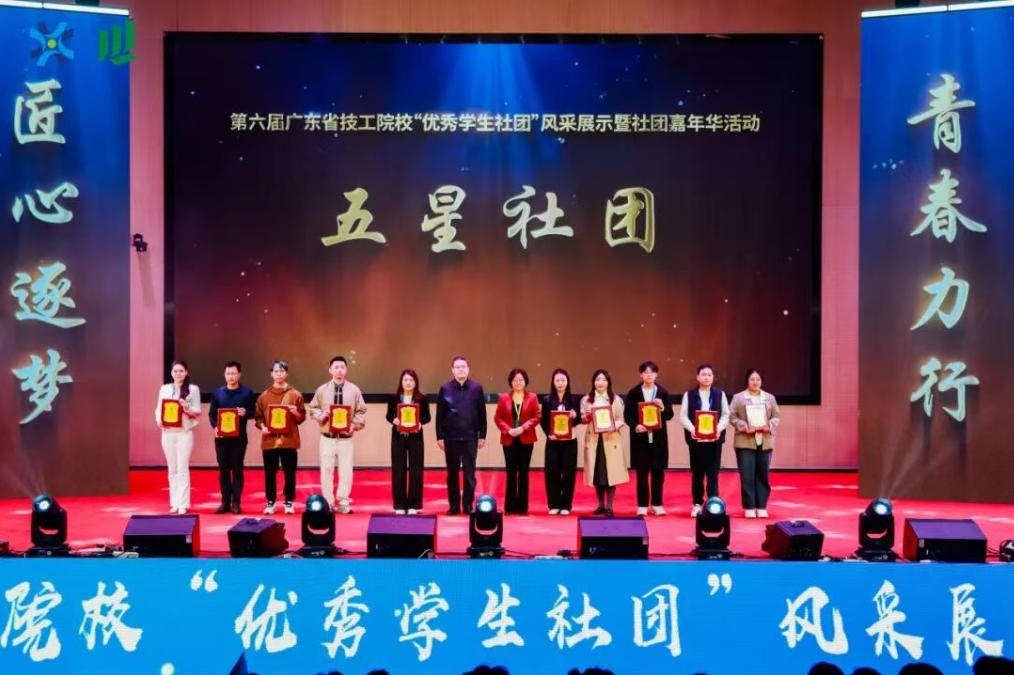 第六届活动自启动以来,共收到来自全省50所技工院校推荐的297个社团参评。经层层遴选,最终184个社团脱颖而出,其中,34个社团获评五星级学生社团,59个获评四星级学生社团,91个获评三星级学生社团。结合综合实力、创新成果与网络人气,特别评选出“最具影响力社团”“最具创新力社团”“最具网络人气社团”各10个。此外,为表彰组织工作突出的单位,同步颁发的还有“优秀组织奖”和“支持贡献奖”。活动现场,广东省职业培训和技工教育协会常务副会长范奎银首先宣读“优秀学生社团”评选结果,随后各位出席领导和嘉宾依次为优秀社团及优秀组织单位隆重颁发奖牌,在表彰先进典型、树立榜样标杆的同时,也为整场活动注入了强劲的激励动能。