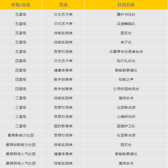 学院在本届活动中荣获“优秀组织奖”与“支持贡献奖”。此外,墨轩书法社等5个社团获评“五星级学生社团”称号,五星级获奖数量在市属院校中名列前茅,知行礼仪社等4个社团获评“四星级学生社团”称号,心晴研究所等4个社团获评“三星级学生社团”称号,社团联合部和园艺社分别荣获“最具影响力社团”与“最具创造力社团”称号,毅峻跆拳道社与建英协会更获得“最具网络人气社团”称号。