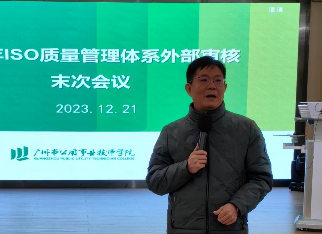 2023年12月20日-21日,广州市公用事业技师学院顺利完成2023年度质量管理体系外部审核,审核组专家对学院质量管理体系的运行给予了高度评价和充分肯定,一致同意学院通过外部监督审核,证书持续有效。