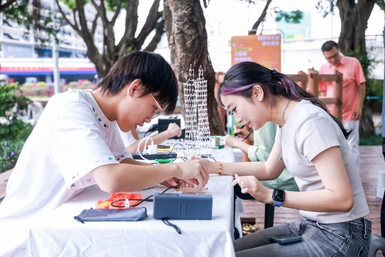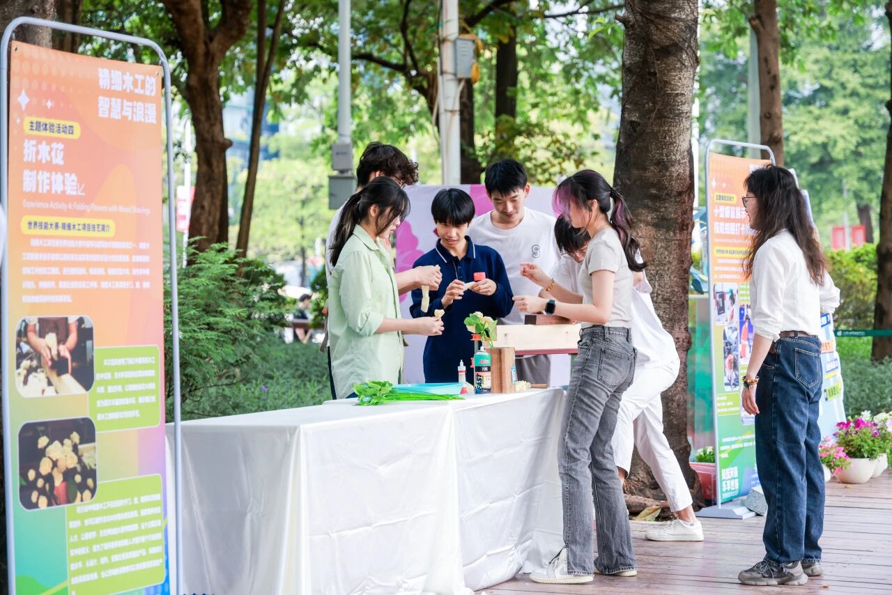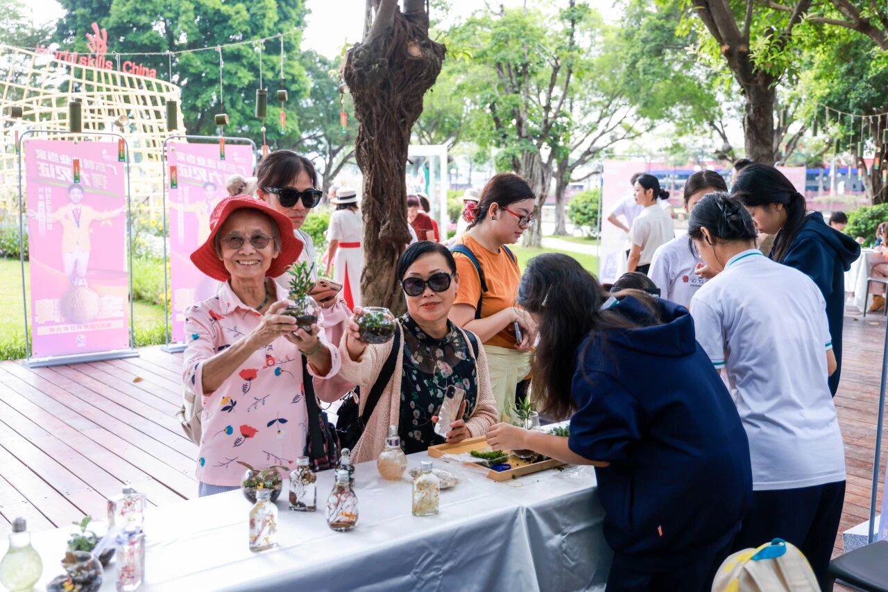 世赛园不仅是视觉的盛宴,更是可触可感的技能实践场。园内多处精心布置了世界技能大赛金牌选手的匠心之作,从竹艺构件到微景观小品,皆可见证顶尖技艺的印记。开幕式当日,世赛园现场还设有组合盆栽制作体验、互承结构木桥、六角亭搭建等7个世界技能大赛互动体验项目,让市民亲身体验“无钉无胶”的传统木构搭建等精湛技艺,感受榫卯与力学的精妙融合。