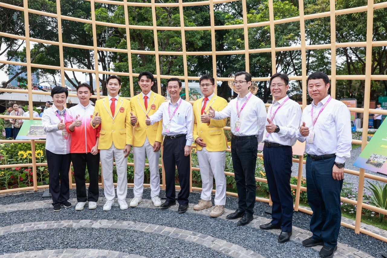 园内,传统工艺与现代设计相映成趣。竹编螺旋构架成为视觉焦点,融合技艺传承与结构创新;层次丰富的岭南花境,精选红花檵木、黄金榕等本土植物,勾勒出四季流转的生态画卷;模块化可拆装设计,贯彻绿色可持续理念,实现展后回迁与循环利用。整座展园不仅呈现艺术美感,更成为生态智慧与工匠精神的生动课堂。