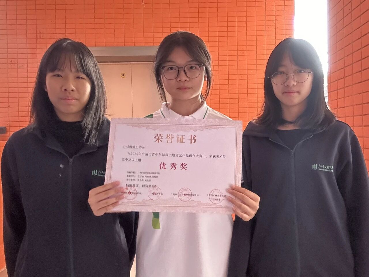 为进一步扩大禁毒宣传影响力,传播禁毒正能量,引领禁毒新风尚,巩固广州市创建全国禁毒示范城市成果,在由广州市禁毒委员会办公室、广州市教育局、广州市人力资源和社会保障局及共青团广州市委员会联合举办的2025年全市青少年禁毒主题文艺作品创作大赛中,学院喜获佳绩,共获28个奖项,包括一等奖3项、二等奖4项、三等奖3项及优秀奖18项。